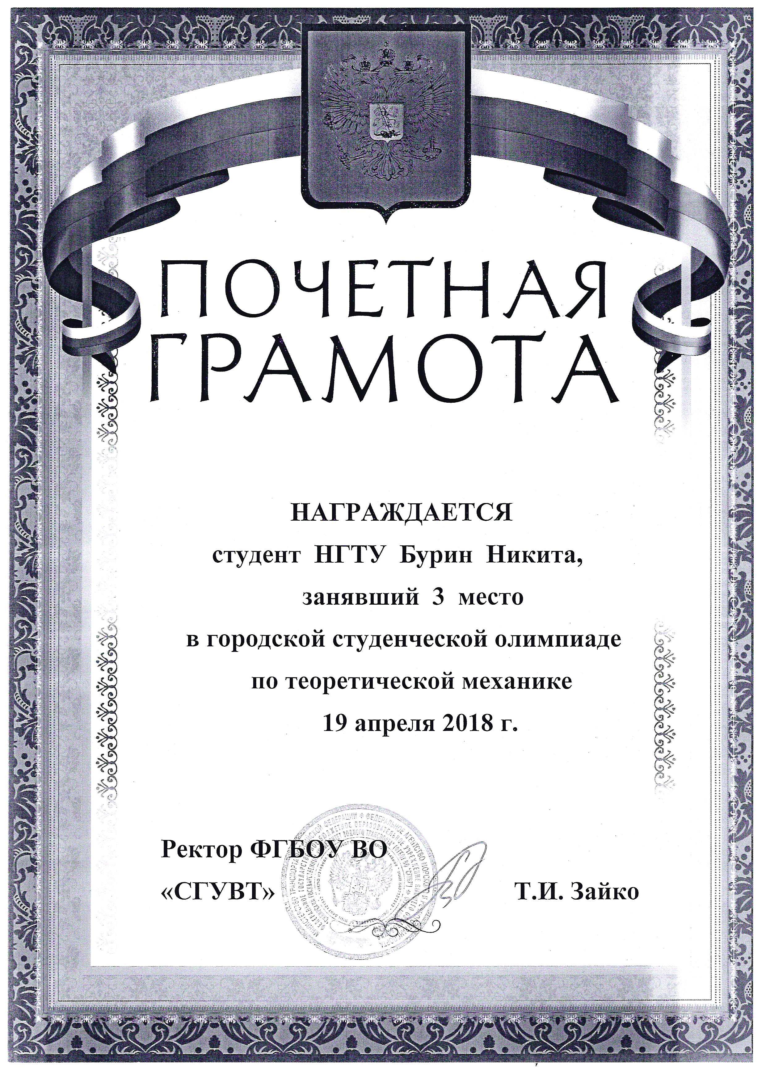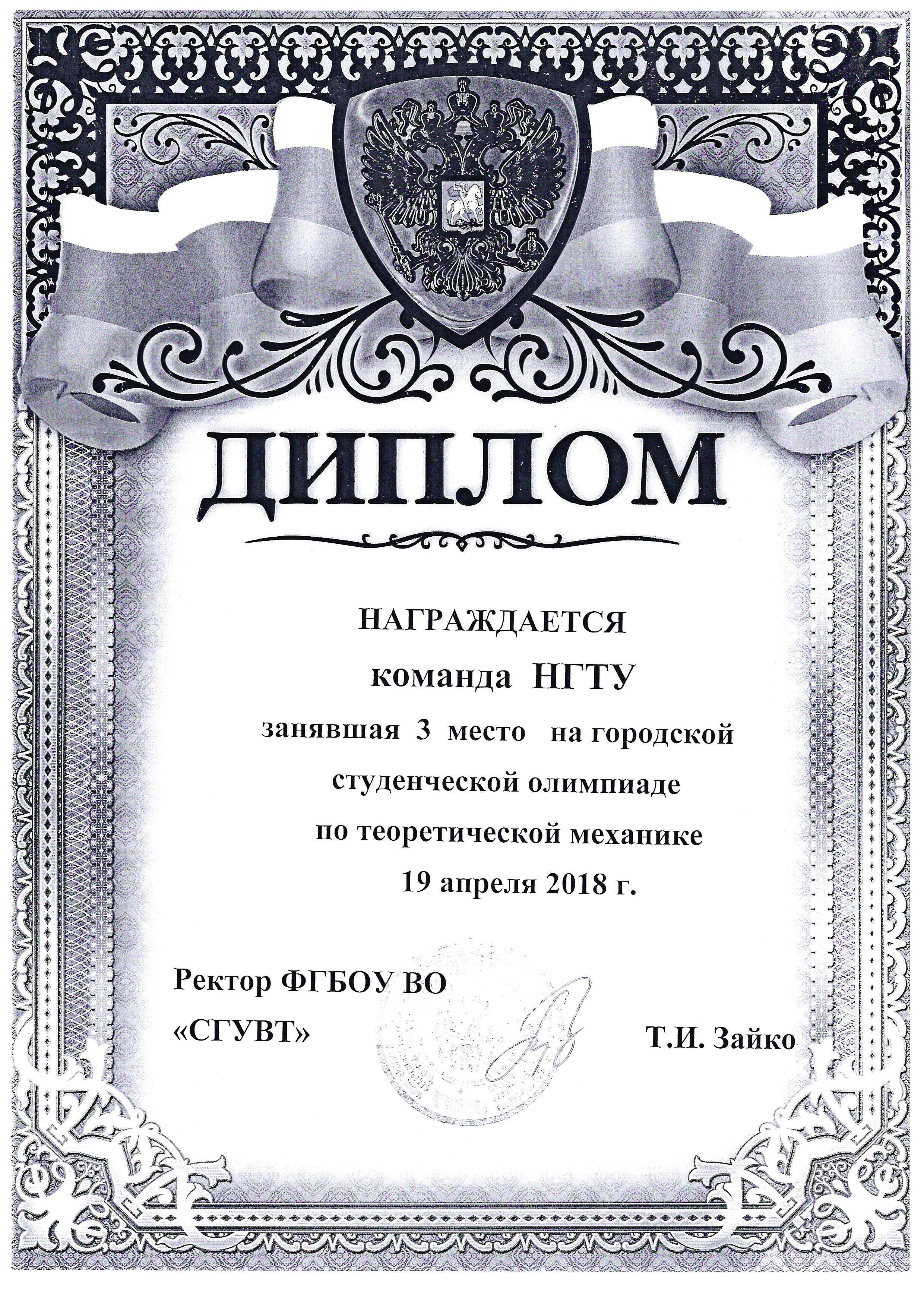 19 апреля 2018 года в Сибирском государственном университете водного транспорта прошла городская олимпиада студентов по теоретической механике. Участвовало 6 команд: НГАСУ, СГУПС, НГТУ, СГУВТ, НГТУ, НГАУ.