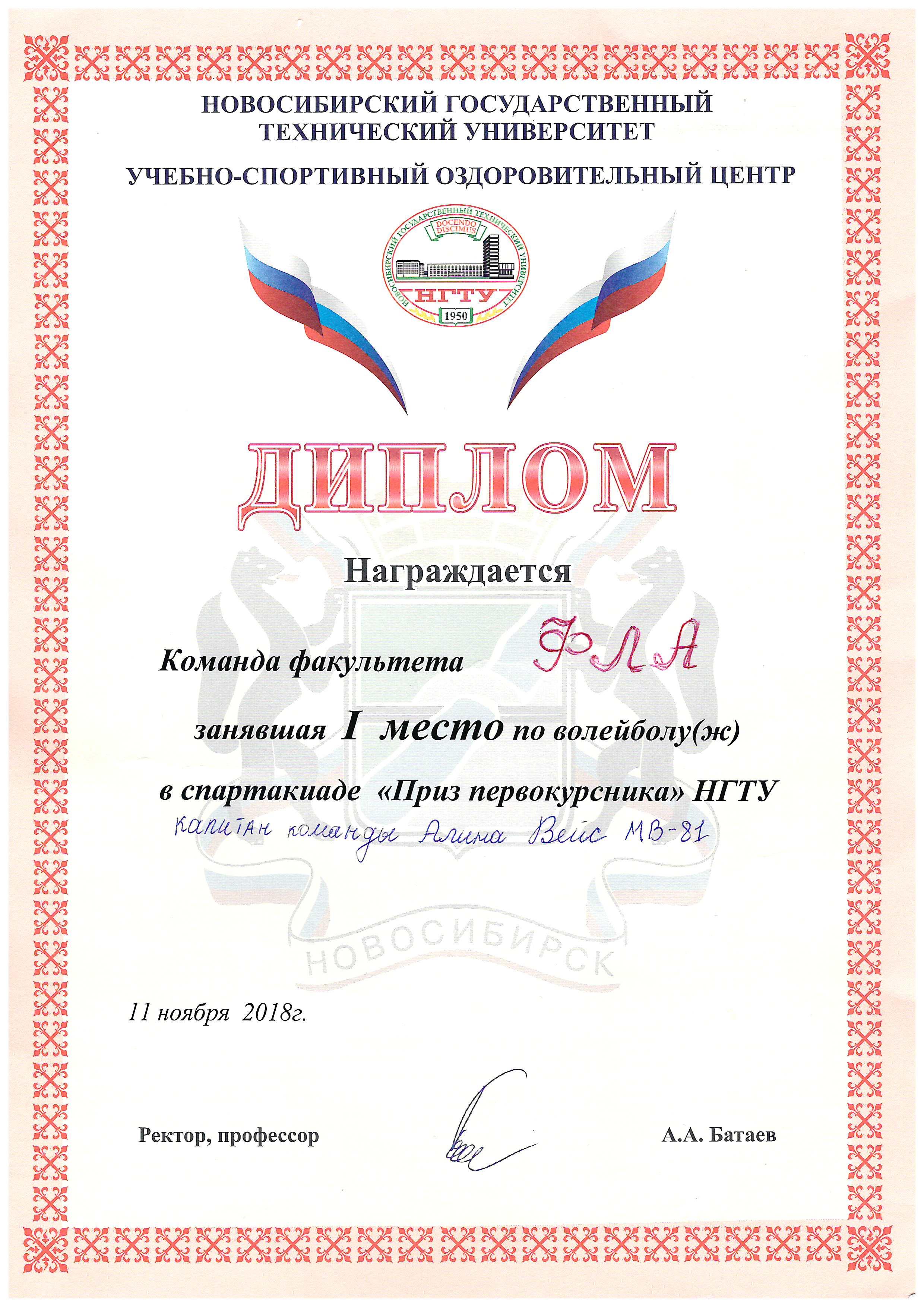 Команда ФЛА заняла 1 место по волейболу в спартакиаде "Приз первокурсника" НГТУ.