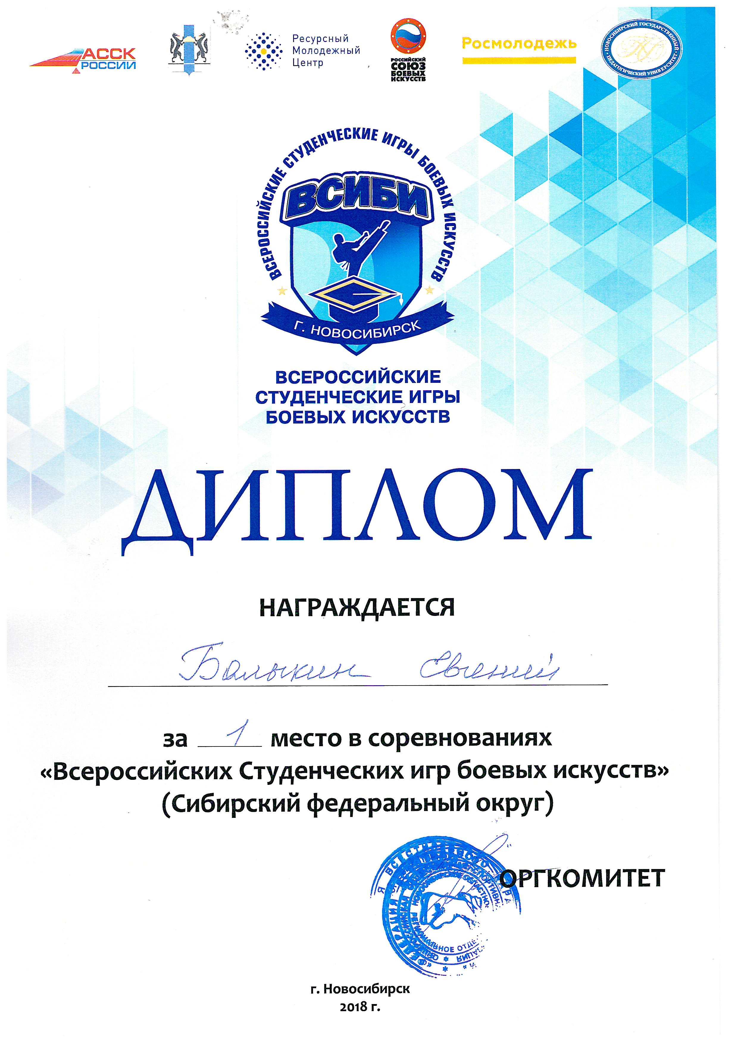 Студент группы МА-51 Евгений Балыкин занял 1 место на Всероссийских Студенческих играх по боевым искусствам.