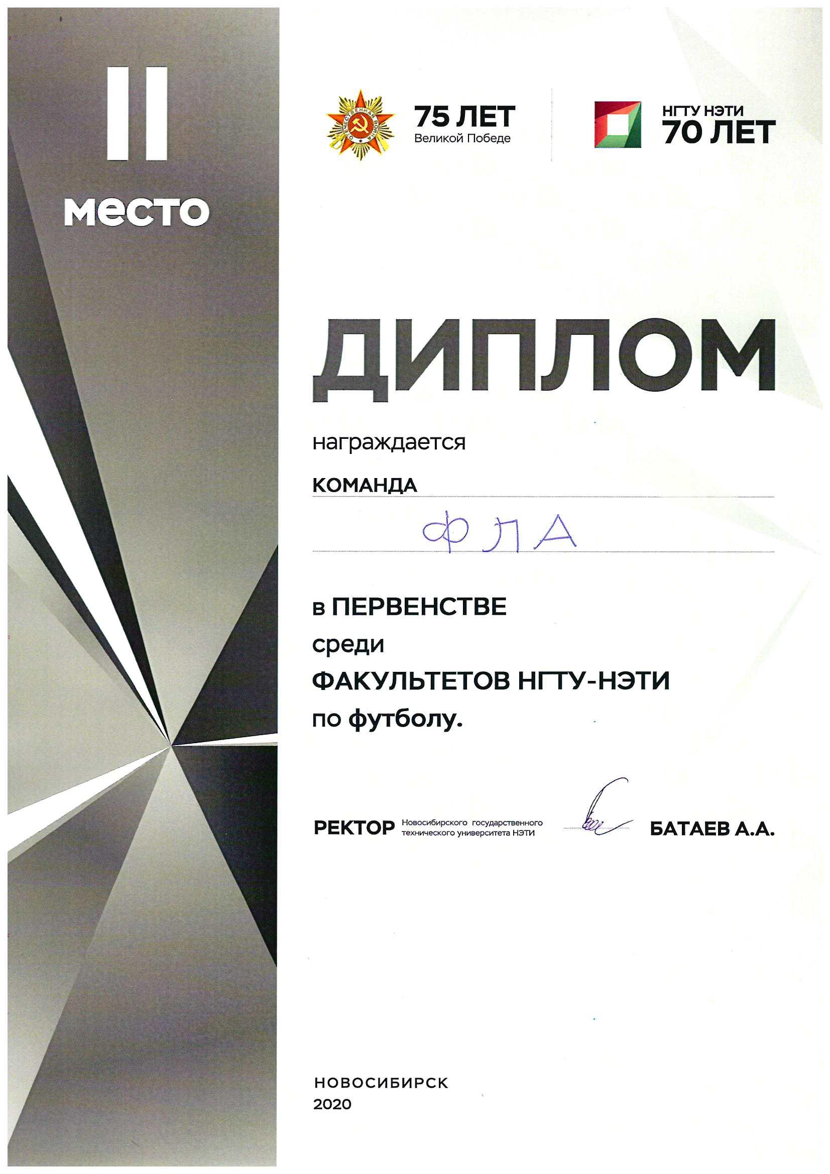 В финале Суперкубка ректора НГТУ-НЭТИ команда ФЛА заняла 2 место.
