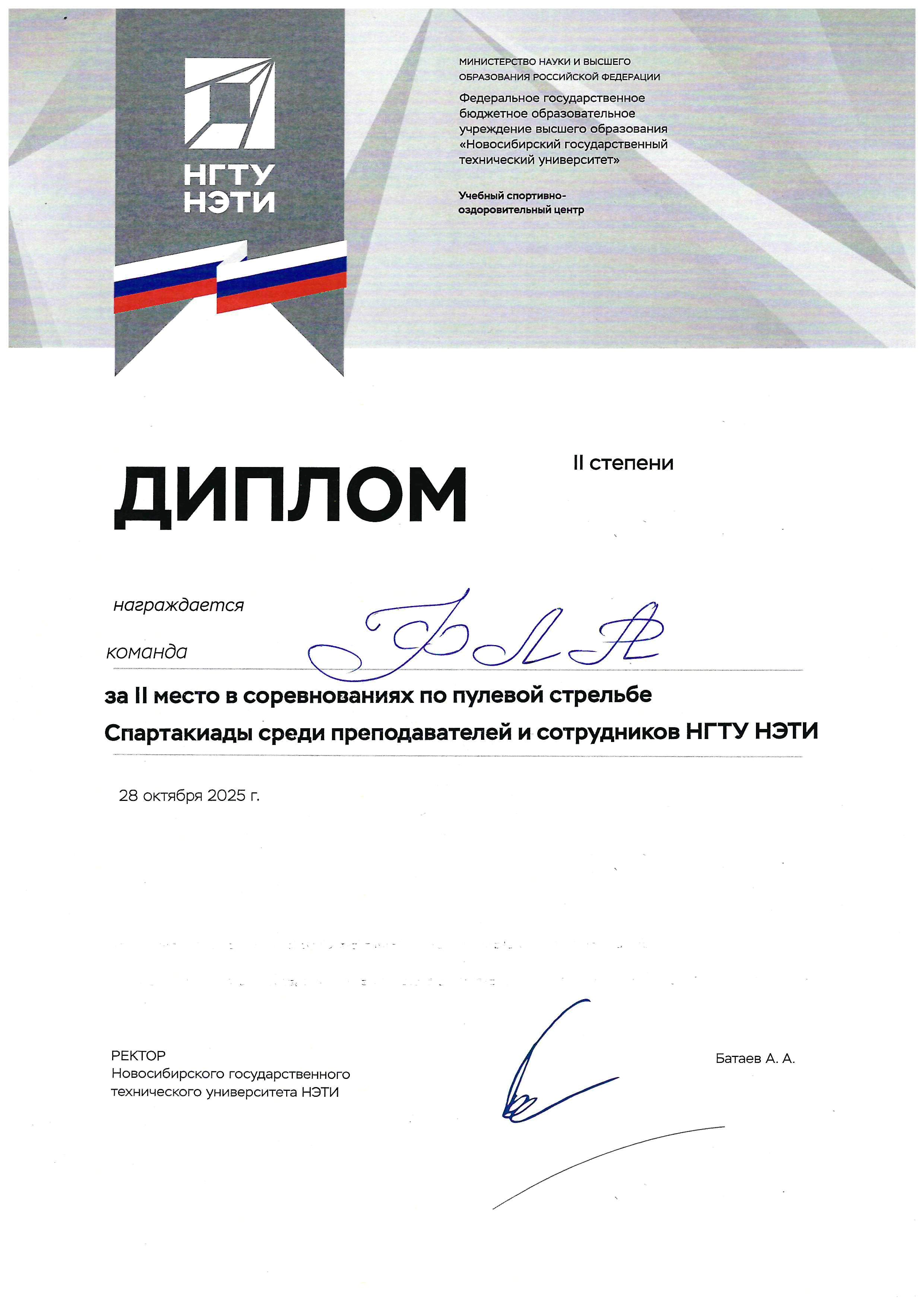 Команда преподавателей и сотрудников ФЛА заняла 2 место в соревнованиях по пулевой стрельбе в Спартакиаде НГТУ.